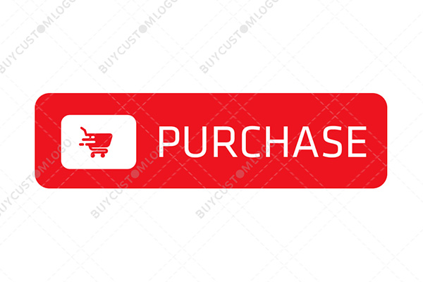 LOGO DESIGN DESCRIPTION This is a custom button created using the emblems of a soft-edged rectangle incorporated with a square, shopping cart and typography PURCHASE designed with red and white colours.