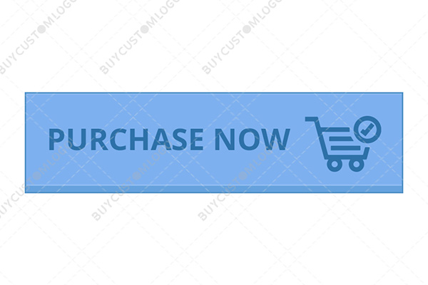 LOGO DESIGN DESCRIPTION It is a custom button created using the emblem of a rectangle which is incorporated with a shopping cart with checkmark and typography PURCHASE NOW designed with multiple shades of blue.