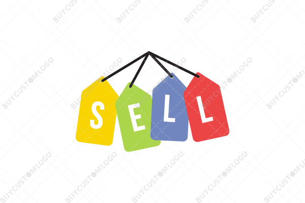 LOGO DESIGN DESCRIPTION This is a custom logo created using the emblem of price tags combined and modified to resemble a gable roof designed with black, yellow, green, blue, white and red, integrated with typography SELL. The design could be reproduced in any colours and with any letters of your choice without the loss of quality. Highly suitable for E-commerce business but could be used by others as well.
