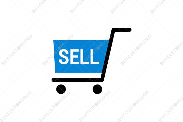 LOGO DESIGN DESCRIPTION This is a minimal custom logo of a shopping cart created with linework, circles and modified rectangle, designed with blue and black, incorporated with typography SELL using negative spaces. The design could be reproduced in any colours and with any letters of your choice without the loss of quality. Highly suitable for E-commerce stores but could be used by other businesses as well.