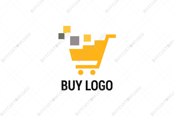 pixelated shopping cart with goods logo