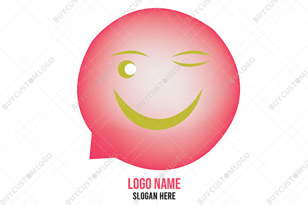 LOGO DESIGN DESCRIPTION This is a customized logo of a happy and naughty winking messaging mascot created using the emblems of iris, circle, direction arrow and smileys. Pink, green and white are used with gradience in the design however it could be reproduced flat in any two colours of your choice without the loss of quality. Suitable for many creative businesses.