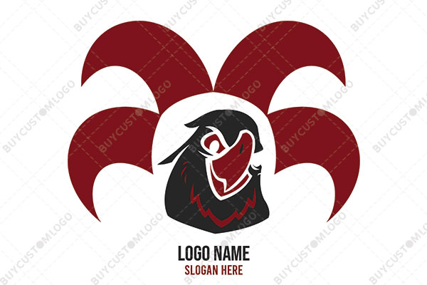 LOGO DESIGN DESCRIPTION This is a customized logo created using the character of a rooster that looks crazy integrated with abstract jester hat to symbolize fun. Black and burgundy are used in the design however it could be reproduced in any colours of your choice without the loss of quality. Suitable for all types of businesses.