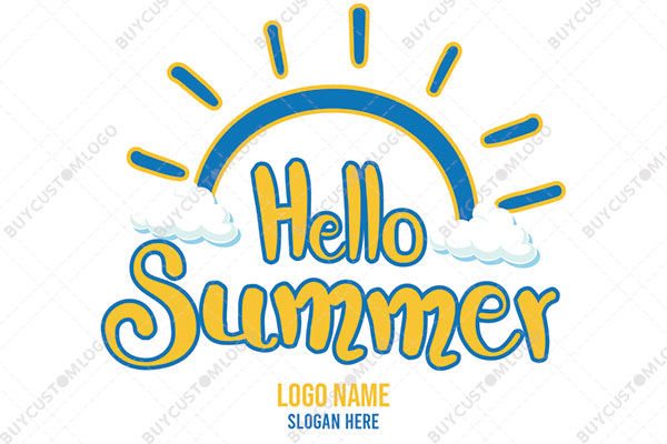 LOGO DESIGN DESCRIPTION This is a customized logo created using the emblem of an abstract rainbow combined with rays to make it resemble a sun which is integrated with clouds. Hello Summer typography is used in the design however it could be reproduced with any letters of your choice without the loss of quality. Its colours could also be replaced with ones that better suit your requirements. Suitable for all types of businesses.
