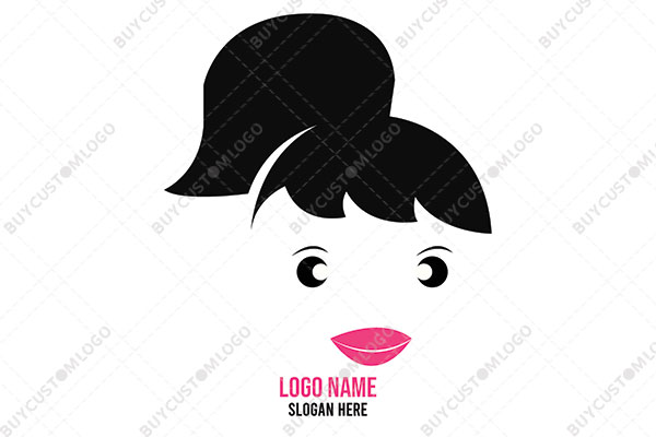 LOGO DESIGN DESCRIPTION It is a customized logo of a beauty created using the emblems of lips, eyes, eyebrows and hairs with a high ponytail style, with her face depicted by the negative space. Pink and black are used in the design however it could be reproduced in any colours of your choice without the loss of quality. Suitable for beauty salons, makeup stores, cosmetics shops, clothing as well as other businesses catering to the female target audience.