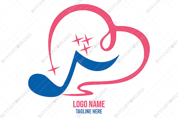 LOGO DESIGN DESCRIPTION This is a customized logo created using the emblem of modified eighth note which is incorporated with an abstract heart and sparklings designed with blue and pink. The design could be reproduced in any colours of your choice without the loss of quality. Suitable for music stores, applications, forums, blogs and youtube channels.