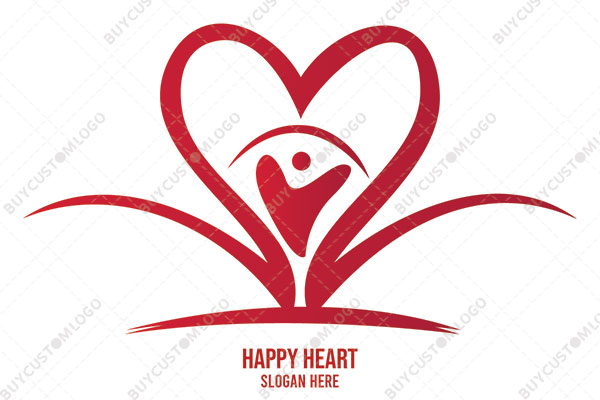 LOGO DESIGN DESCRIPTION This is a customized logo created using the character of an abstract person in an energetic position symbolizing happiness and joy integrated with circular lines above and below representing the sky and ground respectively. It is incorporated in a heart that symbolizes love and care. Burgundy is used in the design however it could be reproduced in any colour of your choice without the loss of quality. Highly suitable for businesses related to healthcare but could be utilized by others as well.