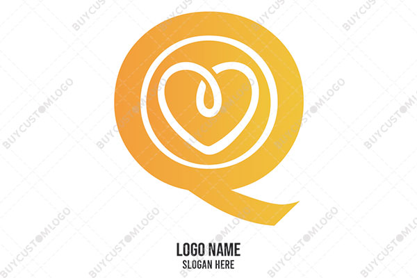 LOGO DESIGN DESCRIPTION This is a customized logo created using the emblem of letter Q which is incorporated with a circle and a heart using negative spaces. Golden yellow is used with gradience in the design however it could be reproduced flat in any colour of your choice without the loss of quality. Suitable for many creative businesses.