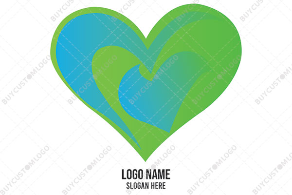 LOGO DESIGN DESCRIPTION This is a customized logo created using the emblem of a heart designed with green and blue inspired by oceans and jungles which gives it an eco look. The design will communicate the love of nature for your brand. Highly suitable for businesses with eco-friendly values.