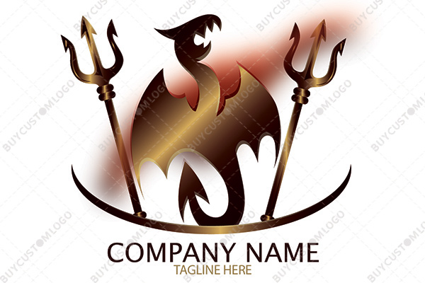 LOGO DESIGN DESCRIPTION This is a customized logo created using the character of an amphiptere dragon designed in silhouette style which is integrated with an abstract ground and tridents. Black, burgundy and golden are used with gradience in the design however it could be reproduced flat in any colours of your choice without the loss of quality. Suitable for many creative businesses.