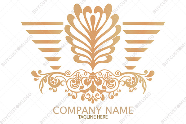 LOGO DESIGN DESCRIPTION It is a customized logo created using the emblem of a bromeliad flower which is integrated with modified lines forming an abstract triangle and heraldic patterns. Peach yellow is used with gradience in the design however it could be reproduced flat in any colour of your choice without the loss of quality. Suitable for cosmetics, beauty, makeup, clothing, fashion and other businesses.
