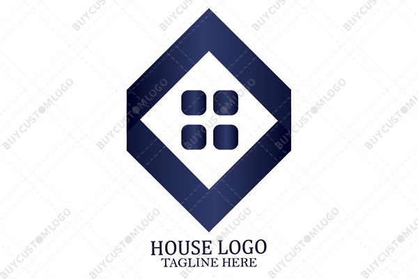 LOGO DESIGN DESCRIPTION This is a customized logo of a diamond house created combining the emblems of gable roofs and integrating it with an abstract window. Navy blue is used with gradience in the design however it could be reproduced flat in any colour of your choice without the loss of quality. Highly suitable for real estate businesses but could be used by others as well.