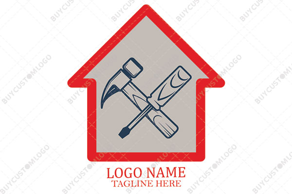 LOGO DESIGN DESCRIPTION This is a customized logo created using the emblem of a hut that symbolizes a place which is incorporated with a hammer and screwdriver symbolizing the service your brand offers. Red, navy blue and grey are used in the design however it could be reproduced in any colours of your choice without the loss of quality. Highly suitable for businesses providing handyman services and hardware stores.