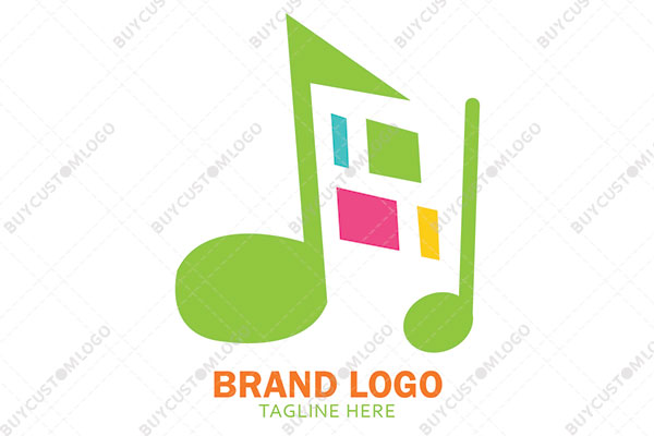 LOGO DESIGN DESCRIPTION This is a customized logo created using the emblems of a quaver and crotchet integrated together to form a beam note which incorporates with it an abstract gallery. Turquoise, green, yellow and pink are used in the design however it could be reproduced in any colours of your choice without the loss of quality. Highly suitable for businesses related to music entertainment.