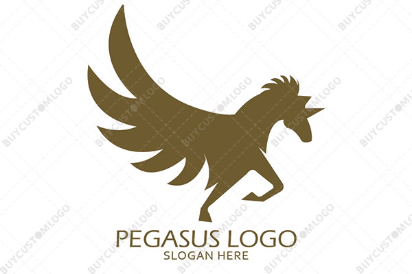 LOGO DESIGN DESCRIPTION This is a customized logo of a two-legged pegasus created using the front of a horse and angelic wing in silhouette, designed with dark sand golden. The design could be reproduced in any colour of your choice without the loss of quality. Suitable for many creative businesses.