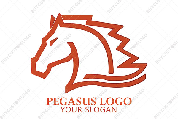 LOGO DESIGN DESCRIPTION This is a customized logo of a pegasus with sharp mane created with linework and iris designed with dark orange giving the design a fiery look. Its simplicity will ensure high memorability of your brand. Suitable for many creative businesses.