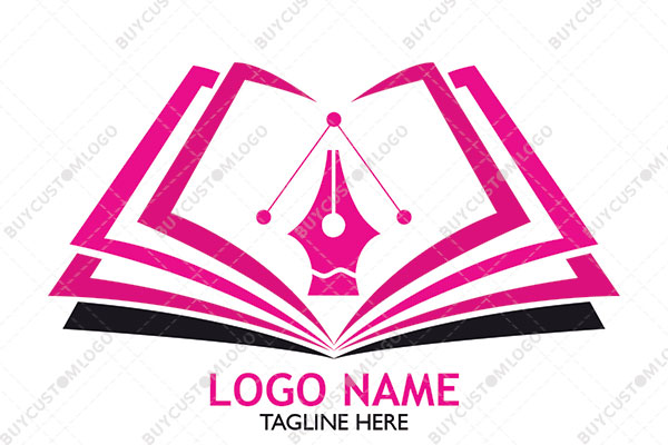 | Exclusive Logo 2180, abstract book, sharing icon and fountain pen logo