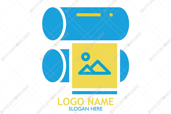 LOGO DESIGN DESCRIPTION This is a customized logo of a photo and film rolls created using the emblems of cylinders, linework, square and circles. Blue and yellow are used in the design however it could be reproduced in any colours of your choice without the loss of quality. Highly suitable for photography businesses but could be used by others as well.
