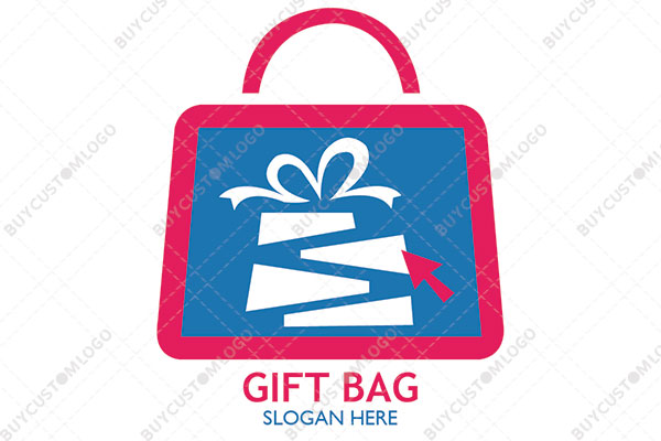 LOGO DESIGN DESCRIPTION This is a customized logo created using the emblem of a shopping bag which is modified to resemble a screen, incorporated with a ribbon, deformed gift box and a cursor symbolizing the type of product being sold and the use of technology. Blue, pink and white are used in the design however it could be reproduced in any colours of your choice without the loss of quality. Highly suitable for retail and e-commerce businesses.