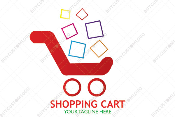 LOGO DESIGN DESCRIPTION This is a customized logo of a shopping cart that resembles a baby carriage, designed with a modified broad line for its body integrated circles representing its wheels and quadrilaterals that symbolize boxes of different goods. Red, pink, yellow, purple, blue and multiple shades of orange are used in the design however it could be reproduced flat in any colours of your choice without the loss of quality. Suitable for e-commerce and retail businesses offering goods for babies and toddlers.