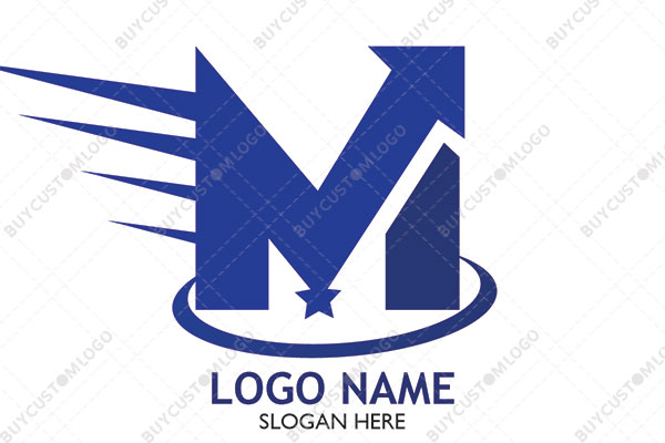 LOGO DESIGN DESCRIPTION This is a customized logo of letter M created using the emblem of an arrow symbolizing growth, lines that symbolize speed, a star that communicates excellence and a circle that gives it a holistic look. Multiple shades of blue are used in the design however it could be reproduced in any colours of your choice without the loss of quality. Suitable for many creative businesses.