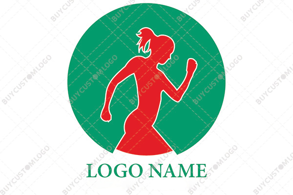 LOGO DESIGN DESCRIPTION This is a custom logo created by incorporating the character of a running female athlete in a round seal designed with red, white and green. The design could be reproduced in any colours of your choice without the loss of quality. Highly suitable for businesses related to running sports and fitness catering to the female audience.