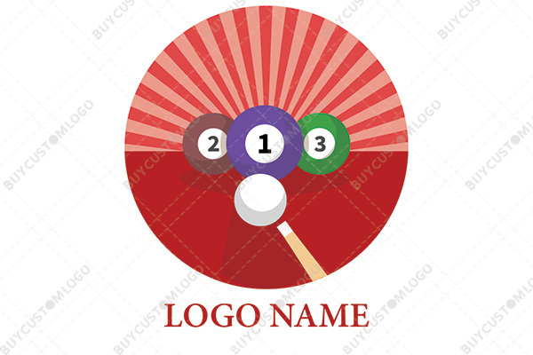 LOGO DESIGN DESCRIPTION This is a customized logo created using the emblem of pool balls and cue stick placed on a table which is integrated with a sky, incorporated in a round seal. Black, white, brown, purple, green, burgundy, yellow and pink are used in the design however it could be reproduced flat in any colours of your choice without the loss of quality. Suitable for related businesses.