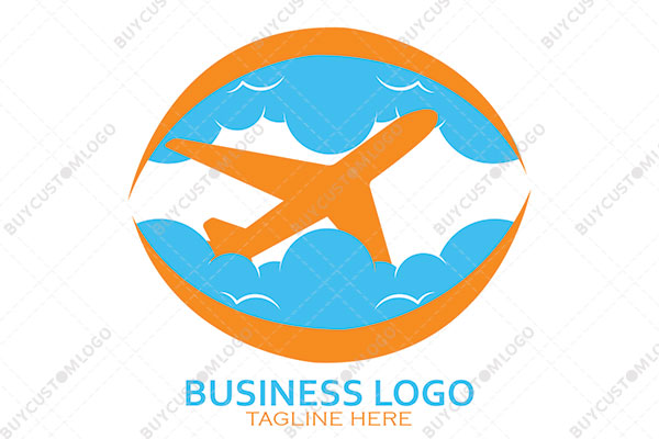 LOGO DESIGN DESCRIPTION This is a customized logo of an aeroplane created in silhouette style which is integrated with clouds symbolizing that it is travelling in the sky, incorporated with crescent moons forming an oval seal. Orange, blue and white are used in the design however it could be reproduced in any colours of your choice without the loss of quality. Highly suitable for businesses related to travel and tourism.