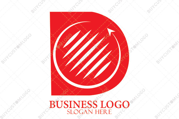 letter d with circular arrow and lines logo
