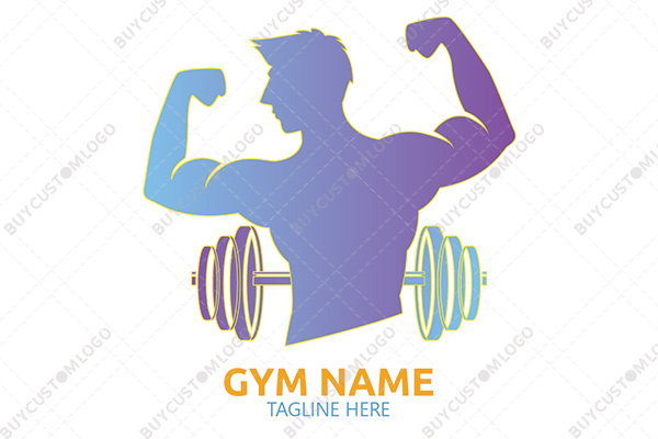 LOGO DESIGN DESCRIPTION Customized logo created using the character of a posing bodybuilder and a barbell with big weights on it. Vivid colours are used in the design that will help your brand stand out and create a strong impression. Suitable for gyms, fitness centres, bodybuilding websites as well as other businesses of this category.
