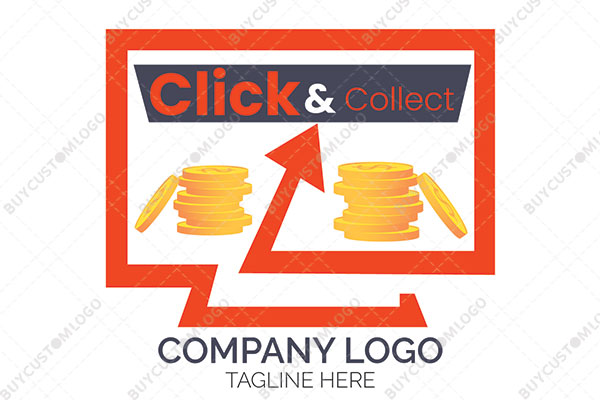 LOGO DESIGN DESCRIPTION This is a custom logo of a computer screen created using the emblem of a modified arrow line, which is incorporated with coins and a tag with Click & Collect text on it. The design could be reproduced in any colours and with any typography of your choice without the loss of quality. Highly suitable for trading websites, applications and platforms.
