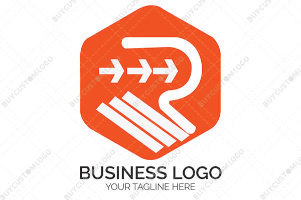 LOGO DESIGN DESCRIPTION This is a customized logo created using the emblem of abstract books symbolizing knowledge and arrows that symbolize movement and progress, which are integrated with a hexagon along with the letter R formed with linework. White and orange are used in the design however it could be reproduced in any colours of your choice without the loss of quality.