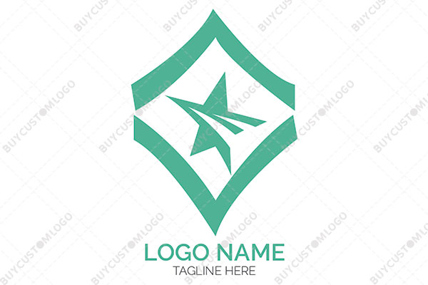 LOGO DESIGN DESCRIPTION This is a custom logo created using the emblem of an abstract five-pointed star which is incorporated in a diamond formed with broad lines. Turquoise is used in the design however it could be reproduced in any colour of your choice without the loss of quality. Suitable for many creative businesses.
