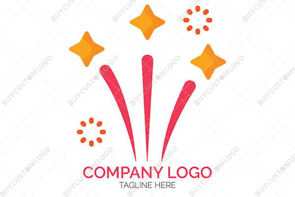 LOGO DESIGN DESCRIPTION This is a custom logo created using the emblem of four-point stars, lines and abstract circles representing firework, designed with pink and multiple shades of orange. The design could be reproduced in any colours of your choice without the loss of quality. Suitable for many creative businesses.