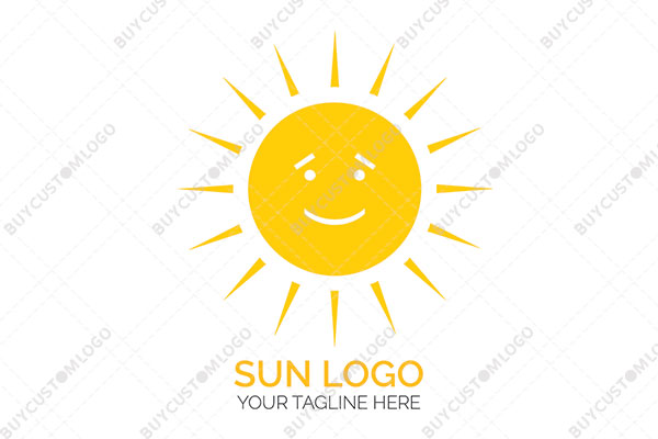 LOGO DESIGN DESCRIPTION It is a custom logo of a happy and calm sun mascot created using the emblem of a circle which is integrated with rays formed with lines and smiley, eyebrows and irises giving it a face. Golden yellow and white are used in the design however it could be reproduced in any colours of your choice without the loss of quality. It will communicate happiness and joy for your brand. Suitable for many creative businesses.