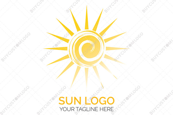 LOGO DESIGN DESCRIPTION This is a custom logo of sun created using the emblem of a circle and cones, the centre of which is modified to resemble stirred liquid, designed with multiple shades of yellow. The design could be reproduced flat in any colours of your choice without the loss of quality. Highly suitable for cafes and restaurants serving coffee beverages.
