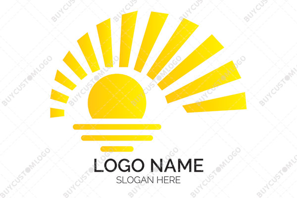 sun with ascending rays on water logo