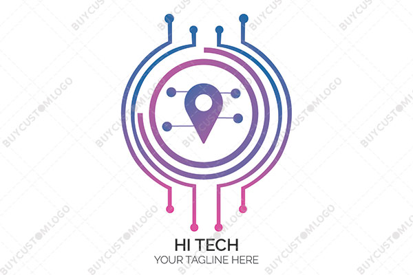 LOGO DESIGN DESCRIPTION This is a custom logo created using the emblem of a location pin, which is integrated with network nodes and incorporated in a circle and circuit lines. Blue and pink are used with gradience in the design however it could be reproduced flat in any colours of your choice without the loss of quality. Highly suitable for tech-related businesses.