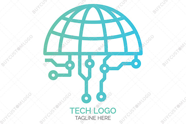 LOGO DESIGN DESCRIPTION This is a custom logo that combines a half globe with grids with circuit lines, created with linework and circles, designed with gradient blue and cyan. The design could be reproduced flat in any colours of your choice without the loss of quality. Suitable for tech-related and creative businesses.