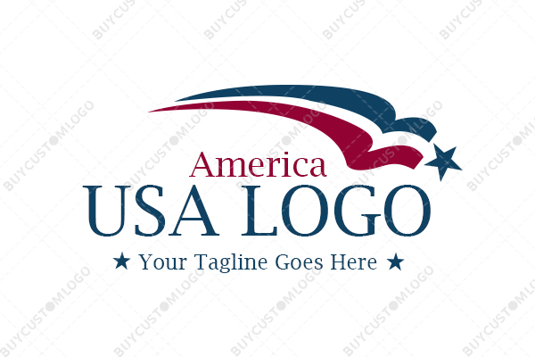 LOGO DESIGN DESCRIPTION This is a custom logo created using the emblem of an abstract waving flag which is modified to resemble the top parts of an eagle's silhouette, integrated with a star designed with pink and blue. The design takes inspiration from the US National Flag and the Bald Eagle. Suitable for many creative businesses.