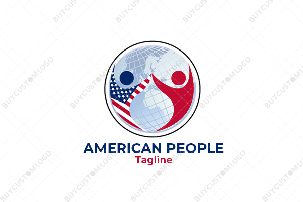 LOGO DESIGN DESCRIPTION This is a custom logo created using the character of abstract persons holding hands, one of which integrates with it the features of the American Flag, integrated with a globe and encircled in a circle. The design communicates a message that America is there to help the whole world at all times. Suitable for many creative businesses.