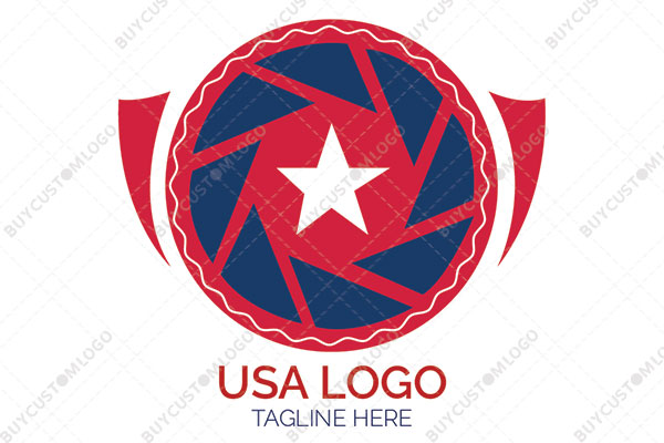 LOGO DESIGN DESCRIPTION It is a custom logo created using the emblem of a shutter which is incorporated in a round seal along with a star and wavy circle, integrated with circular thick to thin lines. Red, blue and white are used in the design taking inspiration from the US national flag. Suitable for many creative businesses.