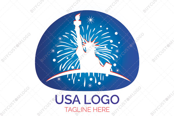 LOGO DESIGN DESCRIPTION It is a custom logo created by incorporating statue of liberty, abstract ground and fireworks in a seal, designed with red, white and gradient blue. The visuals of the design will communicate freedom, patriotism and nationalistic values for your brand. Suitable for many creative businesses.