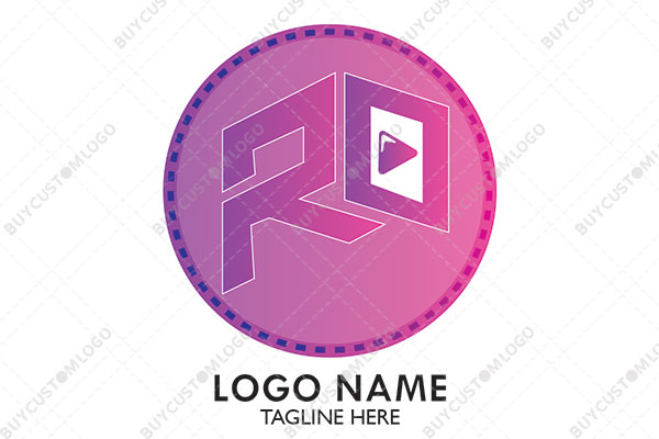 | Exclusive Logo 2819, 3D style letters R and O with play icon in a round seal logo