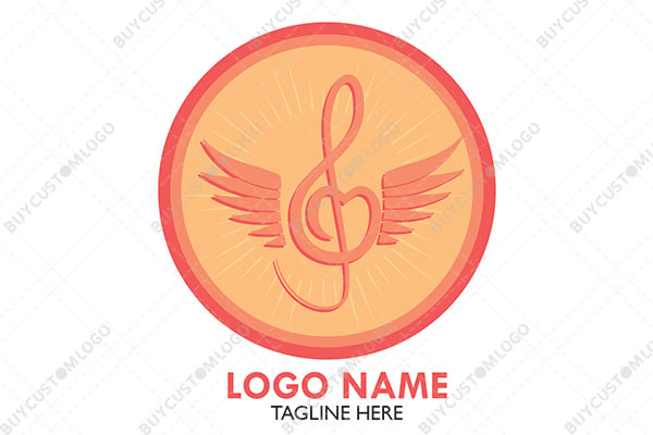 LOGO DESIGN DESCRIPTION It is a custom logo created using the emblem of a clef which is modified to include a heart in it, integrated with wings and incorporated in a round seal along with rays. The design will communicate fun, excitement and freedom for your brand. It is designed with multiple shades of pink and yellow but could be reproduced in any colours of your choice without the loss of quality. Suitable for music stores, record labels, recording studios, bands as well as other related businesses.