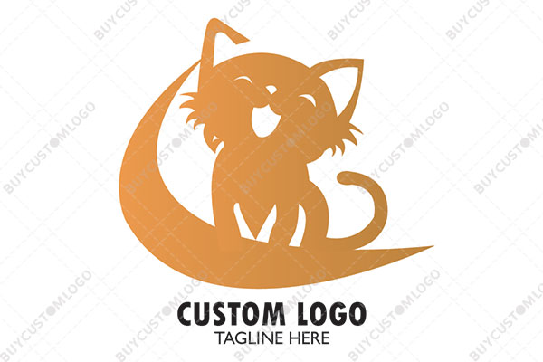| Exclusive Logo 2934, happy cat with circular line silhouette style logo