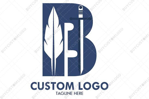 | Exclusive Logo 2963, sword and feather in letter b logo