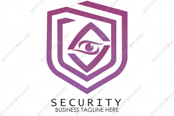 abstract eye and frame in a shield logo