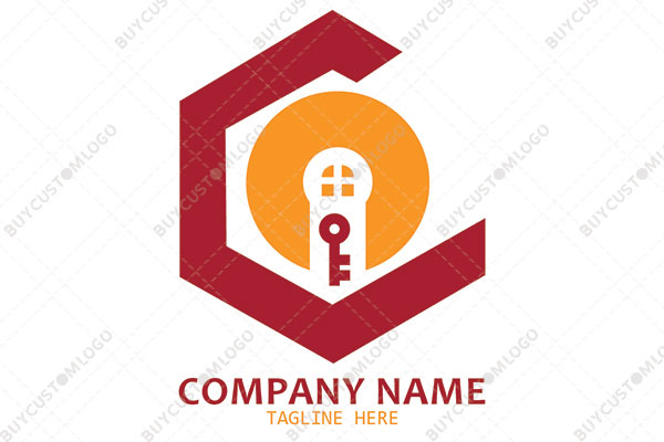 | Exclusive Logo 2972, key and keyhole hut in a hexagon logo