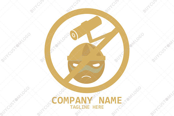 LOGO DESIGN DESCRIPTION This is a custom logo created using the emblem of a CCTV camera which is incorporated in a prohibition symbol along with a worker wearing a safety helmet. Multiple shades of sand yellow are used in the design however it could be reproduced in any colours of your choice without the loss of quality. Suitable for construction, engineering and security-related businesses.